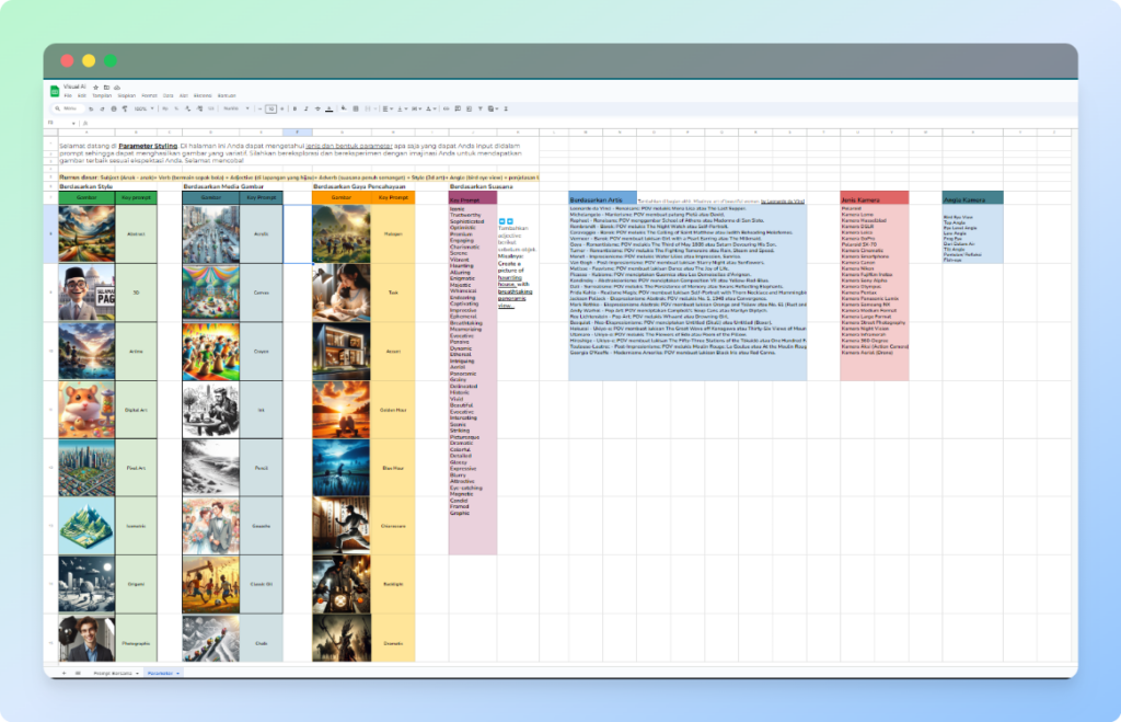 Visual Ai, sebuah petunjuk untuk menjadikan Anda mahir dalam membuat gambar digital menggunakan kecerdasan buatan (AI), mulai dari merancang prompt sampai dengan penggunaan tools AI GRATISAN yang powerful.