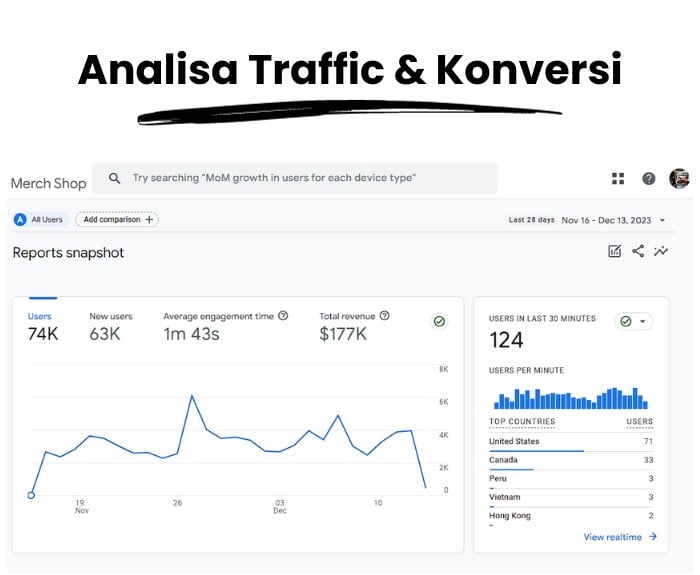 Anda akan pelajari pentingnya analisa website untuk perencanaan bisnis jangka panjang dan praktik langsung step by step cara instalasi Google Analytics 4 di website Anda sehingga dapat merekam aktivitas pengunjung secara realtime.