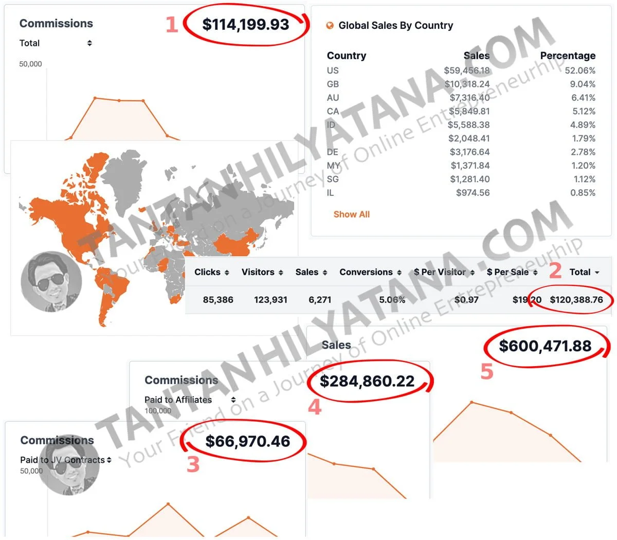 1) Affiliate Commissions: $114,199.95 atau Rp 1.772.497.423 💴