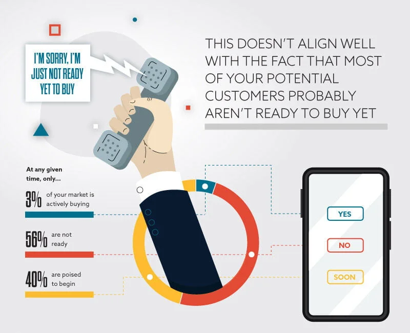 Dan faktanya hanya 3% saja prospek Anda yang siap untuk beli produk yang Anda tawarkan pertama kali.